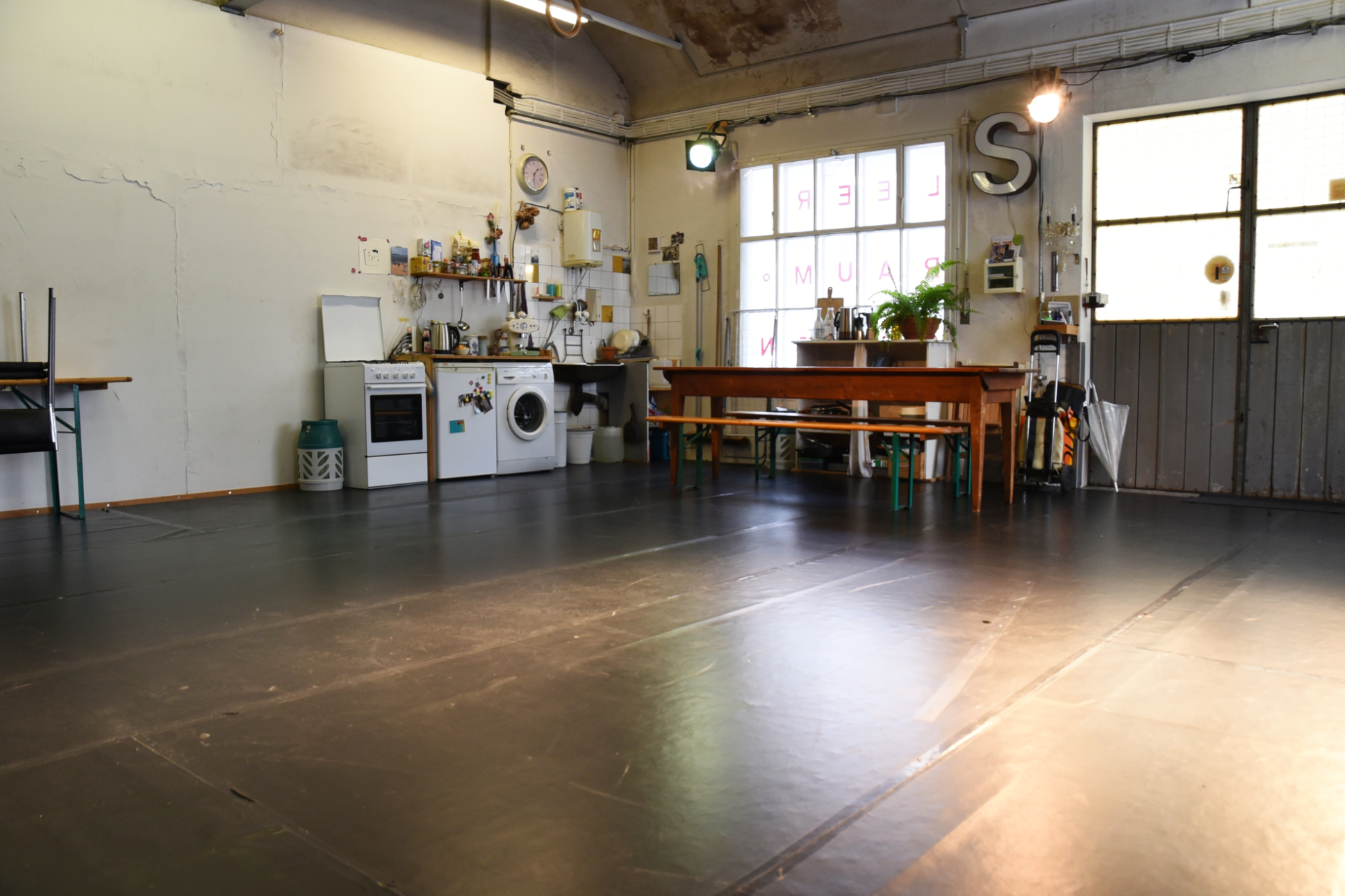 Unser Atelier nutzen wir u.a. als Werkstatt und Proberaum. Hier produzieren wir eigene Stücke, stellen Bühnenbilder her und organisieren kleine Veranstaltungen oder führen Workshops durch.